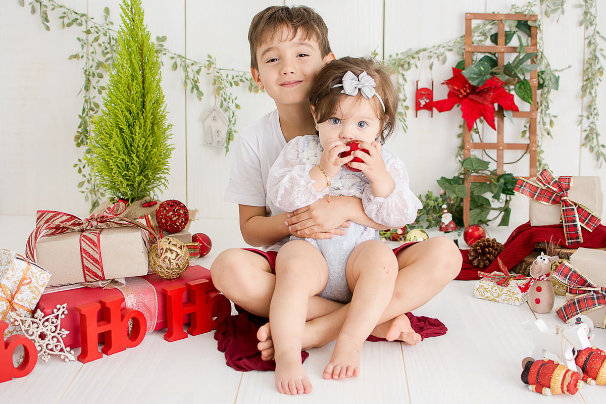Natal 2018 21/Novembro/2018 Lis e Heitor 865 visualizações 0 curtidas Duas crianças em um cenario de natal, elas estão abraçadas e sorrindo no estudio nailie lucchesi essa é a liz, ela esta vestindo um capuz vermelho com touca, em um ensaio de natal pela fotografa nailie lucchesi